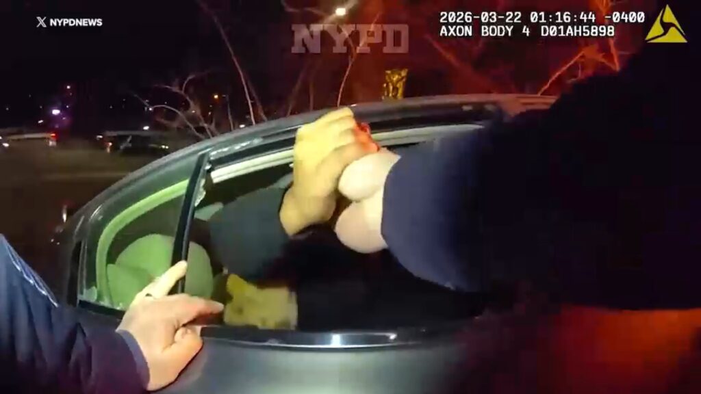 Officers describe rescuing passengers trapped inside burning car on Grand Central Parkway